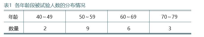 确认对“加龄臭”的除臭效果。著名的日本Suntory公司采用以下测试方法:在遵照《赫尔辛基宣言》和流行病学研究有关伦理准则的前提下,按 照日本Suntory(三得利)公司制定的 《人体试验实施规定》,开展“加龄 臭”除臭效果的确认试验。2)受试者:选择有“加龄臭”症 状的43岁~75岁日本男性20名(平均年 龄59.2±8.7岁)。表1是各年龄段参加 试验人数的分布情况。