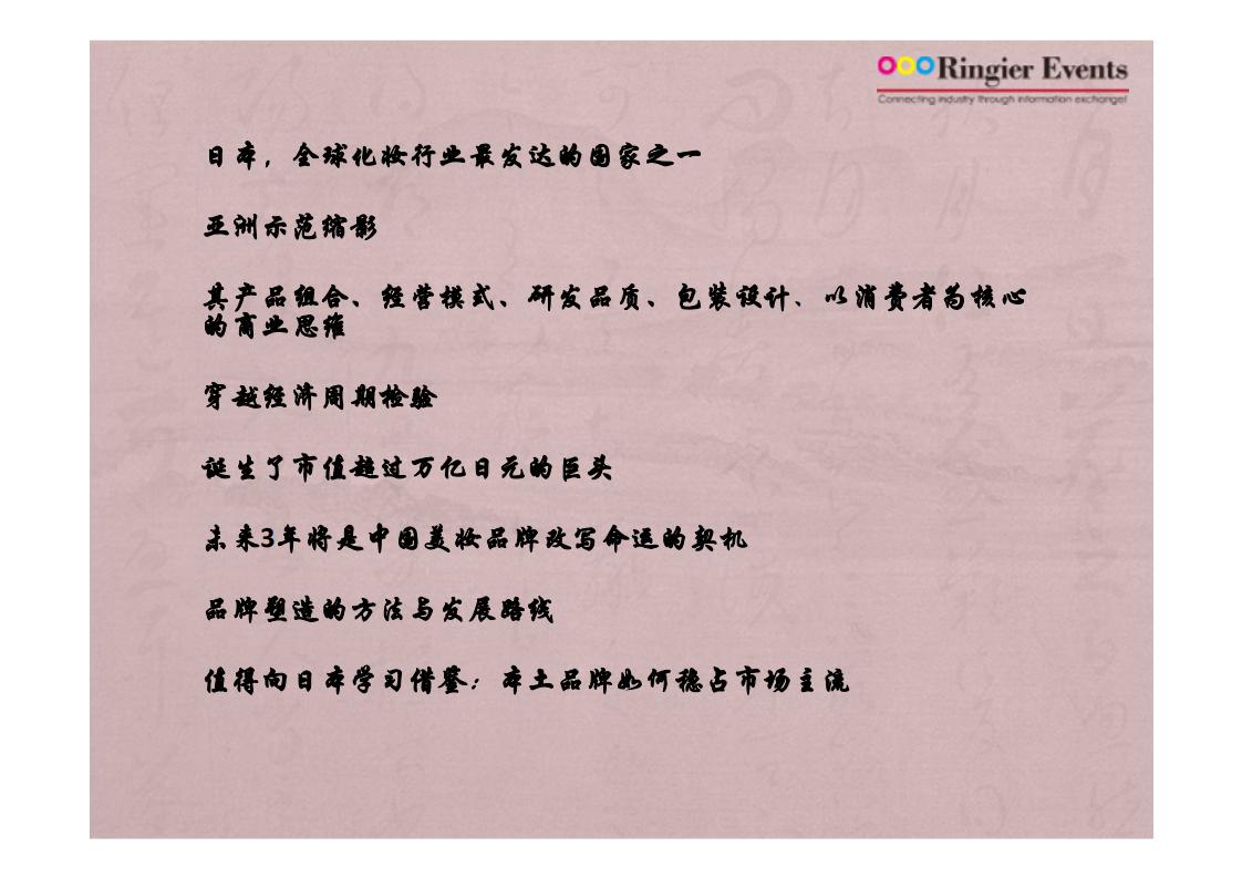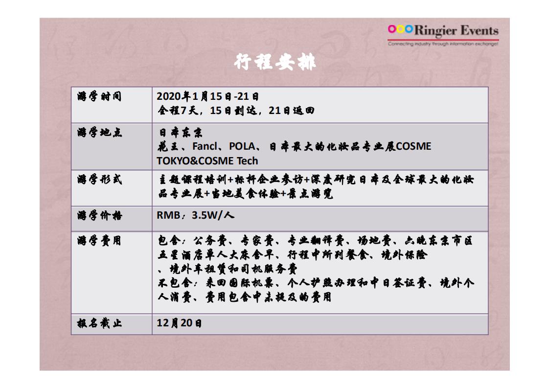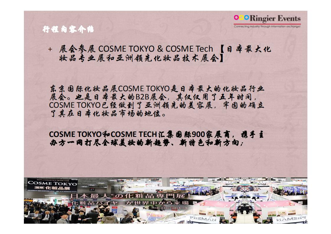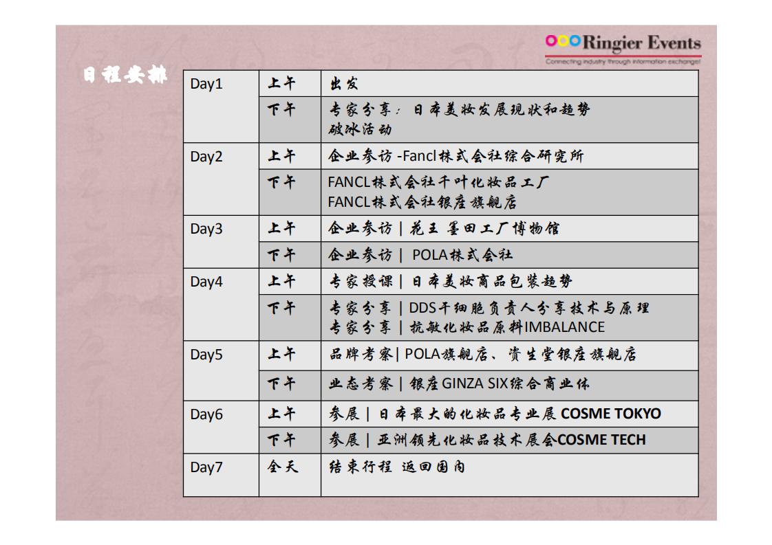 日本美妆品牌学习探索之旅 ,特色是参加多家日本知名品牌及专家授课,以及参加日本 cosme 展。