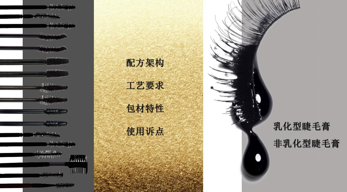 非乳化型的睫毛膏,基本上就是纯油体系的。乳化型睫毛膏的设计是出于我们卸妆上的考虑,都是为了做一个温水可卸絮状脱落的宣称。也就是因为这种温水可卸的特性,相对于来讲,非乳化型的睫毛膏它的持久性要弱一些。常规的我们使用的黑色睫毛膏,里面的塑料基本上都是炭黑,同样的我们负担这种料体高体成形和我们最后产品使用后的光泽度,是通过复配蜂蜡巴西棕榈蜡这些成分。另外嗯腔以及纤维素聚乙烯醇,这部分成分的加入是特殊,对于我们有一些要宣称卷翘型的睫毛膏,它在成睫毛上成型了以后,会因为成膜因为成魔的作用会造成一种弯曲定型的视觉效果。高岭土的话一个是作为填充剂,再一个就是有浓密的作用。