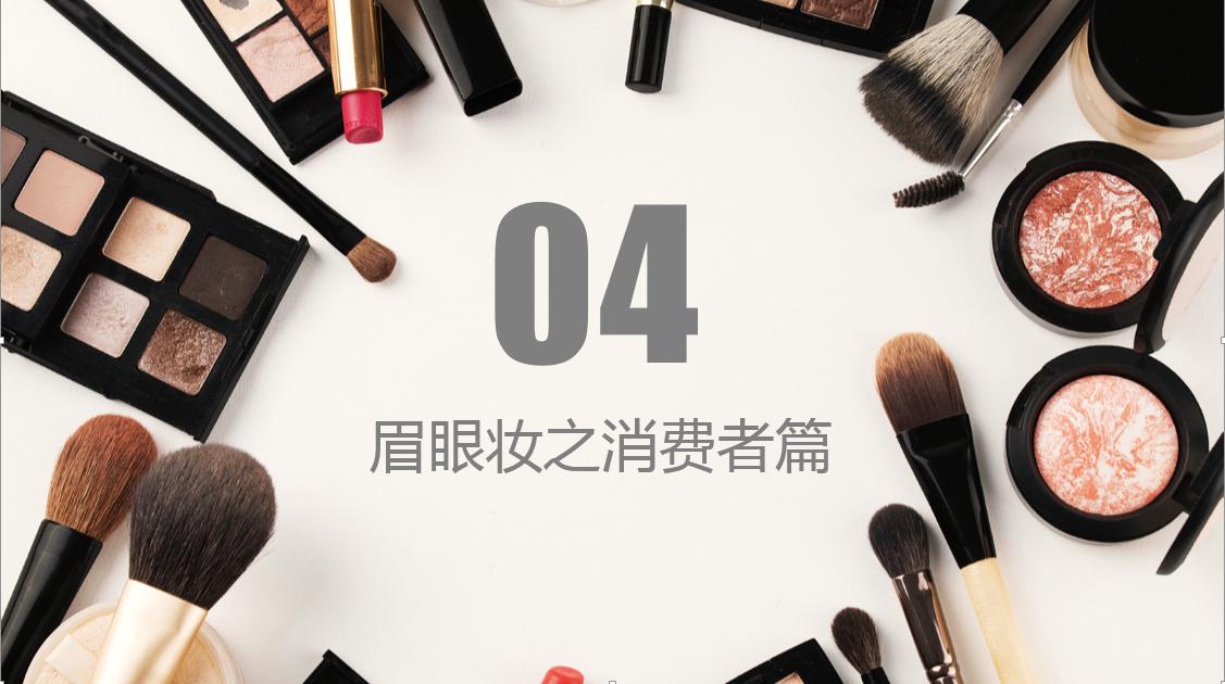 产品开发的部分其实是要想到消费者的需求,关注点都在哪里,我们才能想好为消费者开发什么样的产品。在做产品推广的时候,同样的我们要先把消费者想到的点都告诉他,那么这样的产品消费者是很愿意尝试和接受的。开发者篇的部分基本上我们就讲解完了,解决了我们的产品线布局问题,然后解决了我们眼影的配色问题,探讨了一下我们眉眼妆现在消费者的诉求是哪一些,我们能为消费者做哪些贡献。接下来我们进入到第四个部分,是我们眉眼妆的消费者篇。